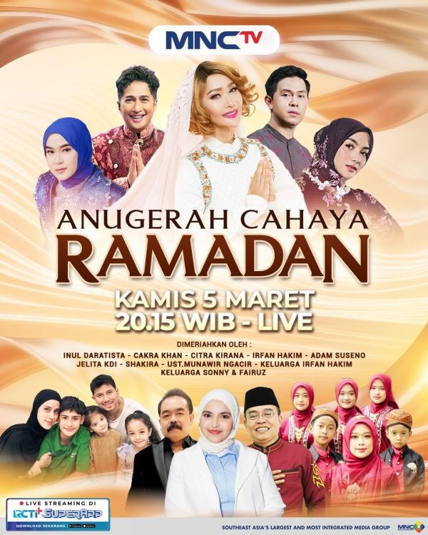 JAKARTA, iNews.id - MNCTV siap menghadirkan malam puncak Anugerah Cahaya Ramadan Awards 2026 ditayangkan langsung pada Kamis, 5 Maret 2026 pukul 20.15 WIB. Ajang ini menjadi momentum apresiasi bagi figur dan keluarga inspiratif yang dinilai memberikan dampak positif melalui karya dan prestasi.