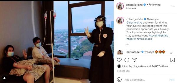 “Thank you @doctorsiska and team for risking your lives to save people from this pandemic. I appreciate your bravery. Thank you for always fighting! And stay safe everyone #covid #fighting #fighter #infusiondrip,” tulis Chicco, dikutip iNews.id dalam unggahan di Instagram pada Kamis (28/1/2021).