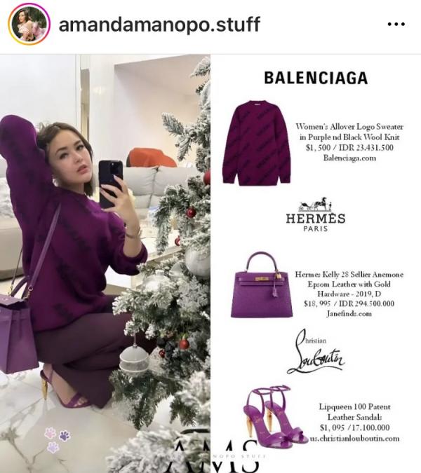 Jadi, bila ditotalkan, gaya serba ungu Amanda Manopo ini bisa lebih dari Rp335 juta. Sontak saja, hal ini menuai perhatian netizen.