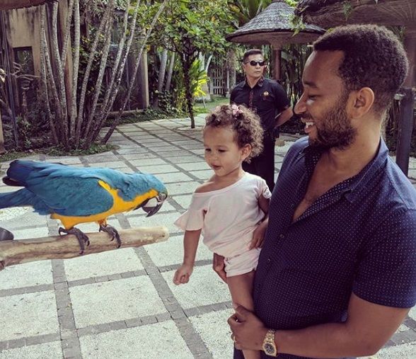 "The bird is the word," tulis John Legend seolah mengatakan bahwa putrinya tengah bercakap dengan burung itu.