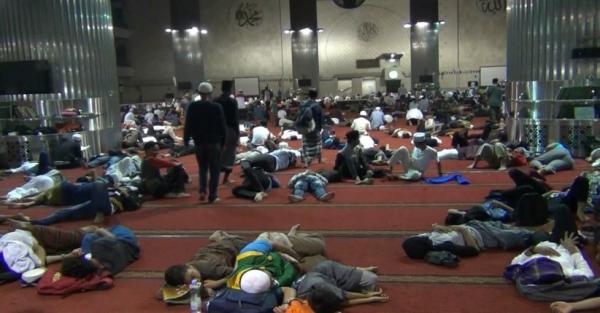 Para peserta Aksi Bela Palestina (Aksi 115) dari luar daerah sudah tiba di Jakarta sejak Kamis (10/5/2018) malam. Sebagian dari mereka menginap di Masjid Istiqlal. (Foto: iNews/Rio Manik)