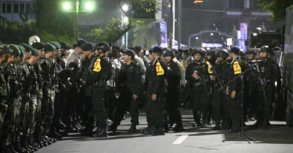 Sekitar 3.000 personel TNI dan Polri tampak sudah disiagakan di depan Kantor Kedutaan Besar Amerika Serikat (Kedubes AS) di Jalan Medan Merdeka Selatan, Jakarta Pusat, sejak Jumat (11/5/2018) dini hari WIB. Di antara mereka terdapat sejumlah polisi mengenakan peci putih dan serban. Tak hanya itu, kendaraan taktis seperti baracuda dan water canon juga disiagakan di sekitar lokasi itu.