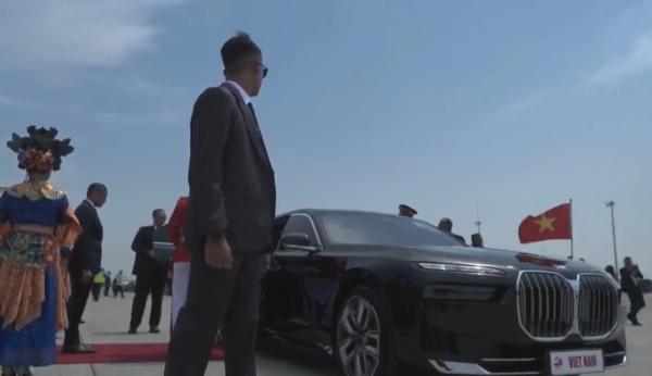 Tak lama setelah itu, dirinya diantar oleh Menteri Pariwisata dan Ekonomi Kreatif (Menparekraf) Sandiaga Uno menuju mobil yang akan mengantarnya ke hotel. Terlihat mobil listrik BMW i7 berwarna hitam dengan bendera Vietnam telah menantinya.