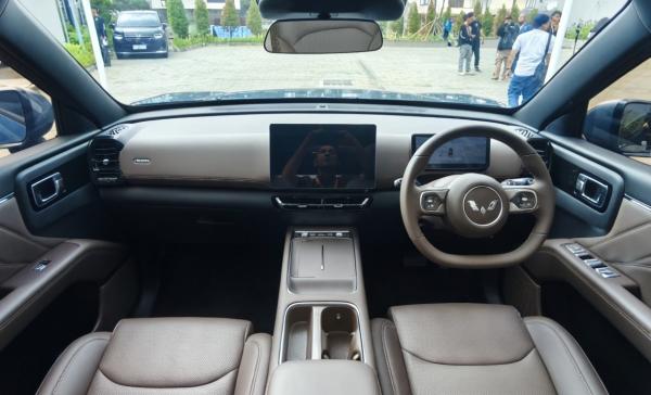 Masuk ke interior, nuansa premium langsung terasa melalui kombinasi warna walnut brown dan carbon black. Fitur seperti ventilated seat, electric seat adjustment, hingga panoramic sunroof menambah kenyamanan selama perjalanan.