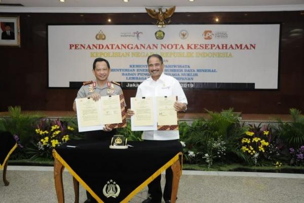 Untuk meningkatkan keamanan dibidang pariwisata Menpar Arief Yahya dan Kepala Kepolisian Republik Indonesia (Kapolri) Tito Karnavian menandatangani Nota Kesepahaman (MoU). Penandatanganan MoU berlangsung di Markas Besar Kepolisian Republik Indonesia, Kamis (10/1/2019). Dalam Nota Kesepahaman yang ditandatangani Kapolri dan Kemenpar berisi beberapa poin antara lain kerjasama pertukaran data dan informasi di bidang pariwisata, pengamanan dan penegakan hukum dari Polri di sektor pariwisata, serta kerjasama pengembangan sumber daya manusia (SDM) lintas lembaga.