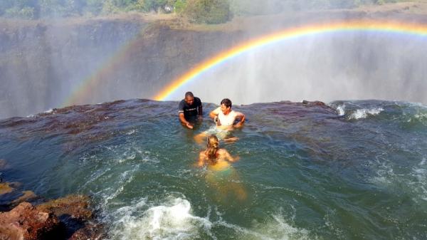 'Devils Pool' terkenal dengan sebutan kolam paling berbahaya di dunia. Pasalnya, kolam tersebut berada di puncak air terjun Victoria yang ikonik dan berada di ketinggian 100 meter. Bagaimana, apakah Anda berani uji nyali untuk berenang di sana?